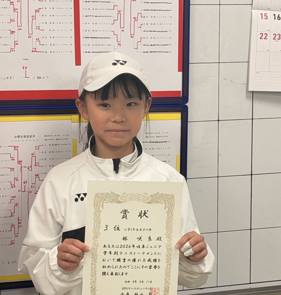2026年岐阜ジュニア学年別テニストーナメント 小学5年生女子の部 3位入賞